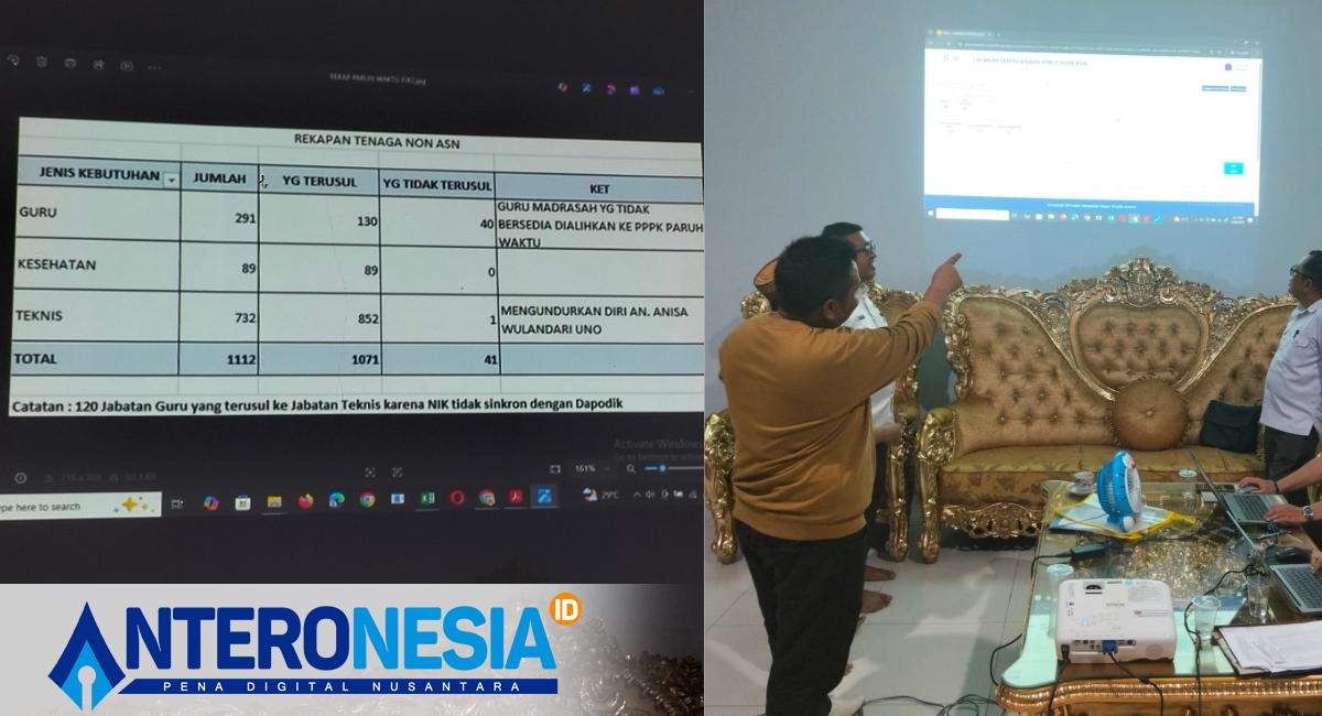 AnteroNesia.id, Gorontalo Utara– Sebanyak 1.071 dari total 1.112 tenaga non-Aparatur Sipil Negara (ASN) Pemerintah Kabupaten (Pemkab) Gorontalo Utara (Gorut) telah masuk dalam sistem Kementerian Pendayagunaan Aparatur Negara dan Reformasi Birokrasi (PAN-RB). Data tersebut diusulkan untuk perubahan status mereka menjadi Pegawai Pemerintah dengan Perjanjian Kerja (PPPK) Paruh Waktu.