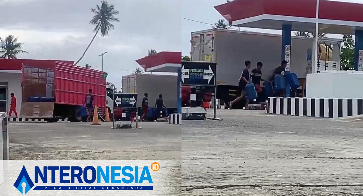 Anteronesia.id, Gorontalo Utara– Praktik penyaluran Bahan Bakar Minyak (BBM) bersubsidi jenis solar di salah satu SPBU Kabupaten Gorontalo Utara, diduga kuat menyimpang dari aturan yang berlaku. Berdasarkan rekaman video yang diterima awak media, terlihat aktivitas pengisian solar menggunakan jeriken (gelon) dilakukan secara terang-terangan di lokasi tersebut.