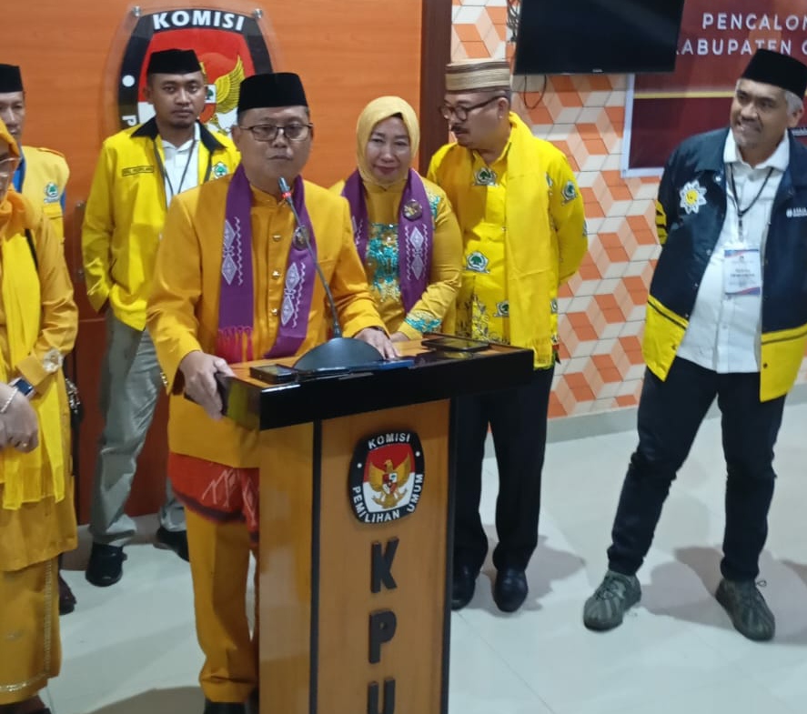“Ini semua berkat kehendak dari Allah Subhanahu Wa Ta’ala (SWT) yang menggerakkan seluruh keajaiban politik ini, maka kami Partai Golkar dan Gelora bisa mendaftar sebagai calon bupati dan wakil bupati pada hari ini,” katanya.