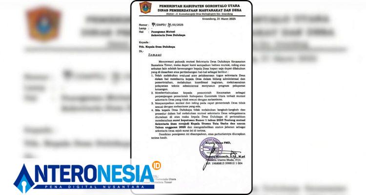 Anteronesia.id, Gorontalo Utara– Rencana pergeseran jabatan atau rolling Bendahara Desa Dulukapa, Kecamatan